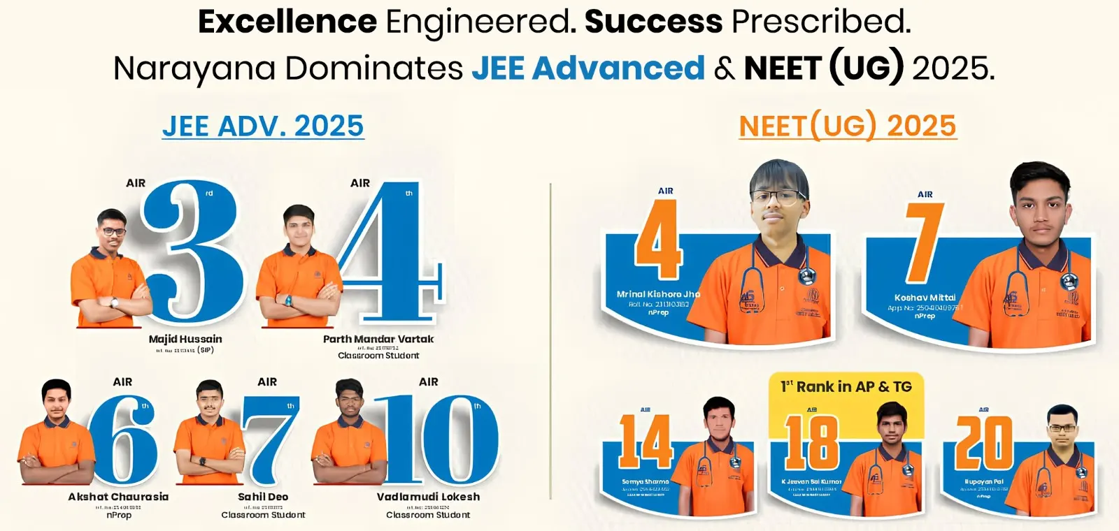 In the journey of The Narayana Group of more than 5 decades so far, the aim has been to provide every student with the skills, means, and resources to excel in academics and achieve desired success. Narayana's NEET and IIT-JEE expert faculty provides top-level subject learning, individual student growth, and the most effective study plans.